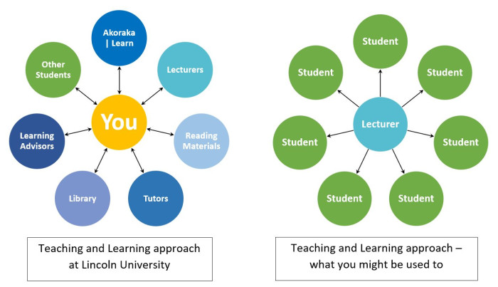 In New Zealand, you are expected to take an active role in your studies. This means, for example, actively participating in class or group discussions. Sharing your own ideas may not have been necessary in the educational environments you have studied in previously. However, these discussions are expected at Lincoln University and necessary for your success as a learner. In this academic culture, you are considered a partner with your teacher and expected to present your own thoughts. Taking an active role also means asking questions and seeking help right when you need it. Students who ask questions are demonstrating their engagement with their course content and show they are learning new things. It is expected that you share your thoughts and questions with your lecturers, tutors, classmates and different study groups on a regular basis. Library staff and Academic Success in Learning, Teaching and Library (LTL) are here to support you academically as well.