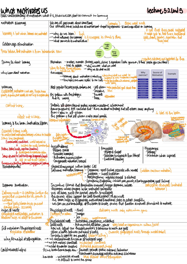 - During the lecture: Kelly-Anne makes further notes (in orange pen) adding to what she has already outlined. She can include examples and extra information because the basic outline is already there.
