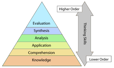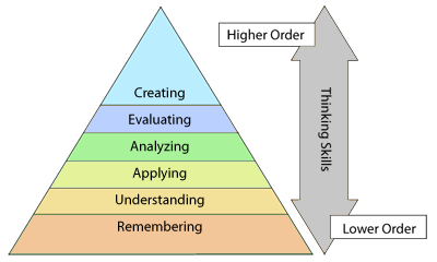 Bloom’s Taxonomy is a way of categorising and ordering thinking skills. It was initially introduced by Benjamin Bloom back in 1956. The purpose of this classification system is to classify and compare Lower Order Learning Skills from Higher Order Learning Skills. Below is a basic diagram of Bloom’s Taxonomy.